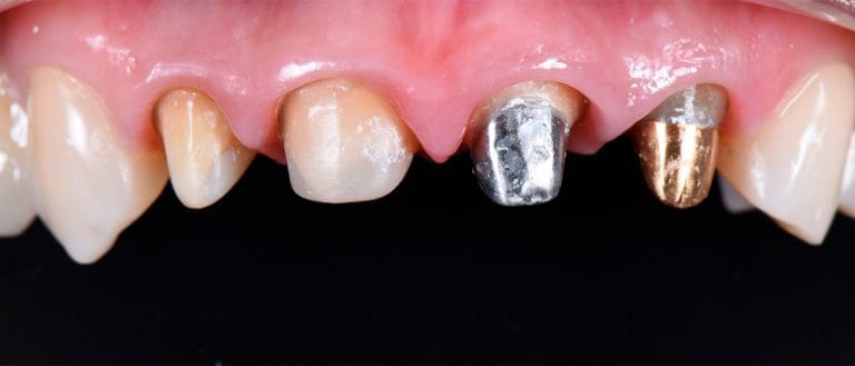 Обратилась с жалобами на старые коронки, потемнение возле десны.
